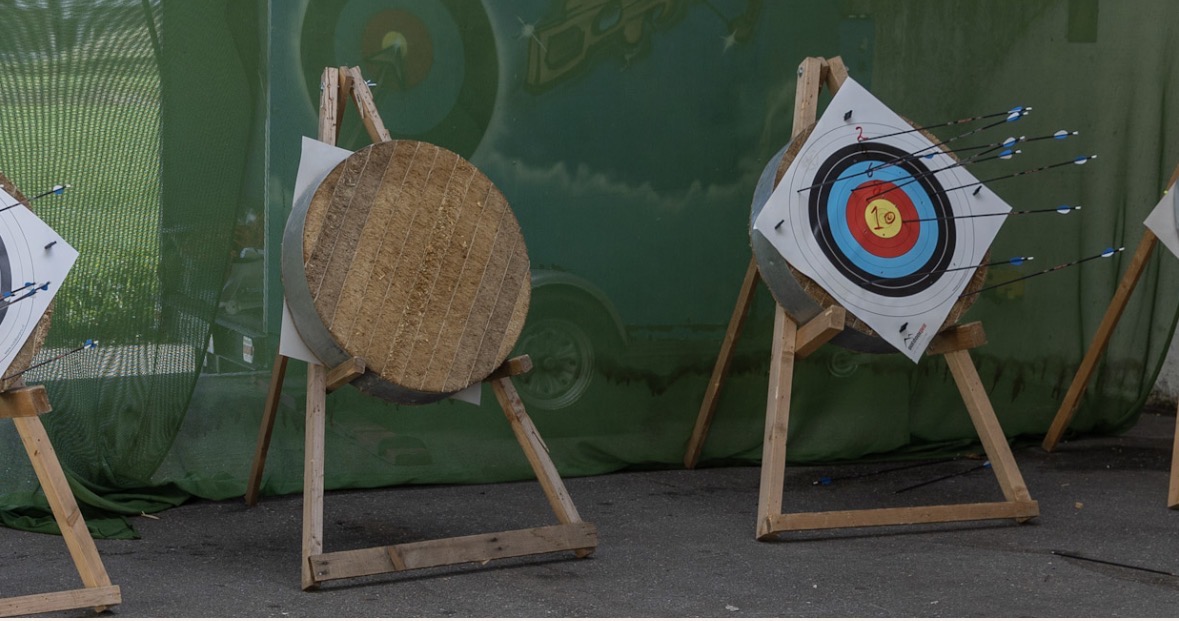 We kunnen boogschieten, in een afgescheiden ruimte natuurlijk. Deelname is vanaf 8 jaar.
